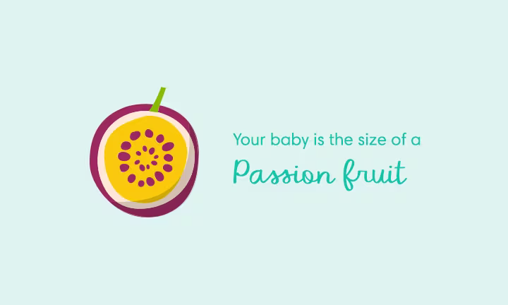 Your baby is only the size of a passion fruit but is growing and developing quickly!