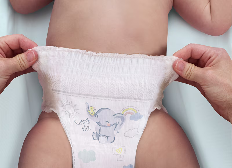 An absorbent core that captures the humidity to keep your baby’s skin dry for up to 12 hours