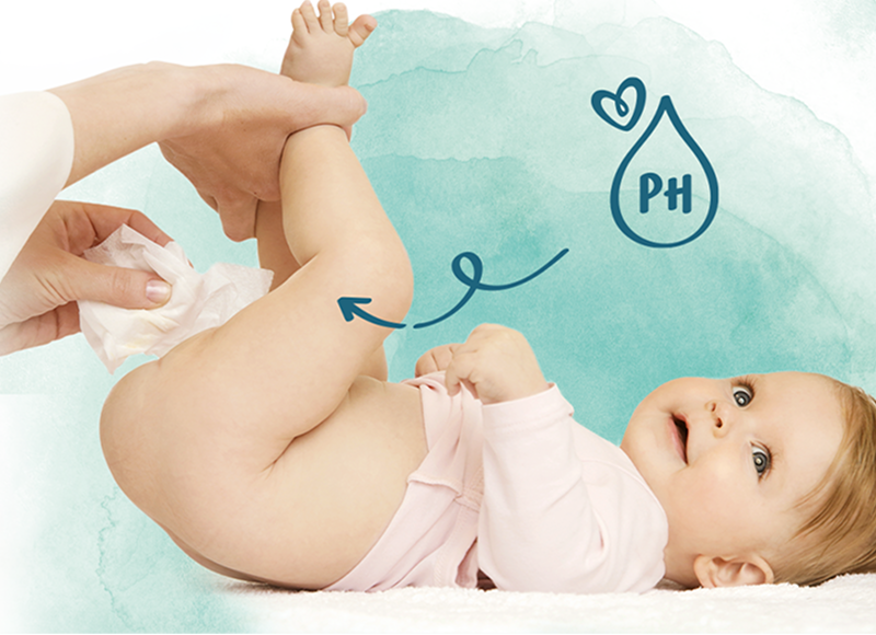 Our baby wipes’ formula helps restore skin pH to its natural level.