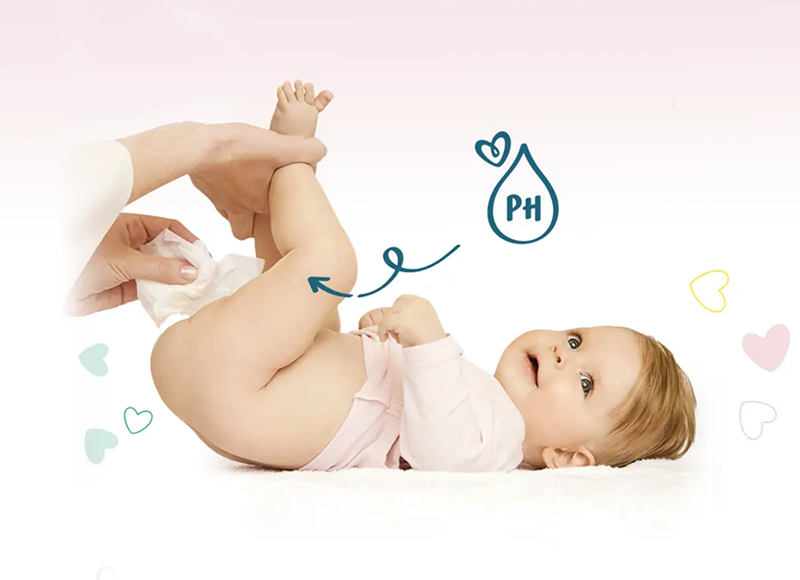 Our baby wipes’ formula helps restore skin pH to its natural level.